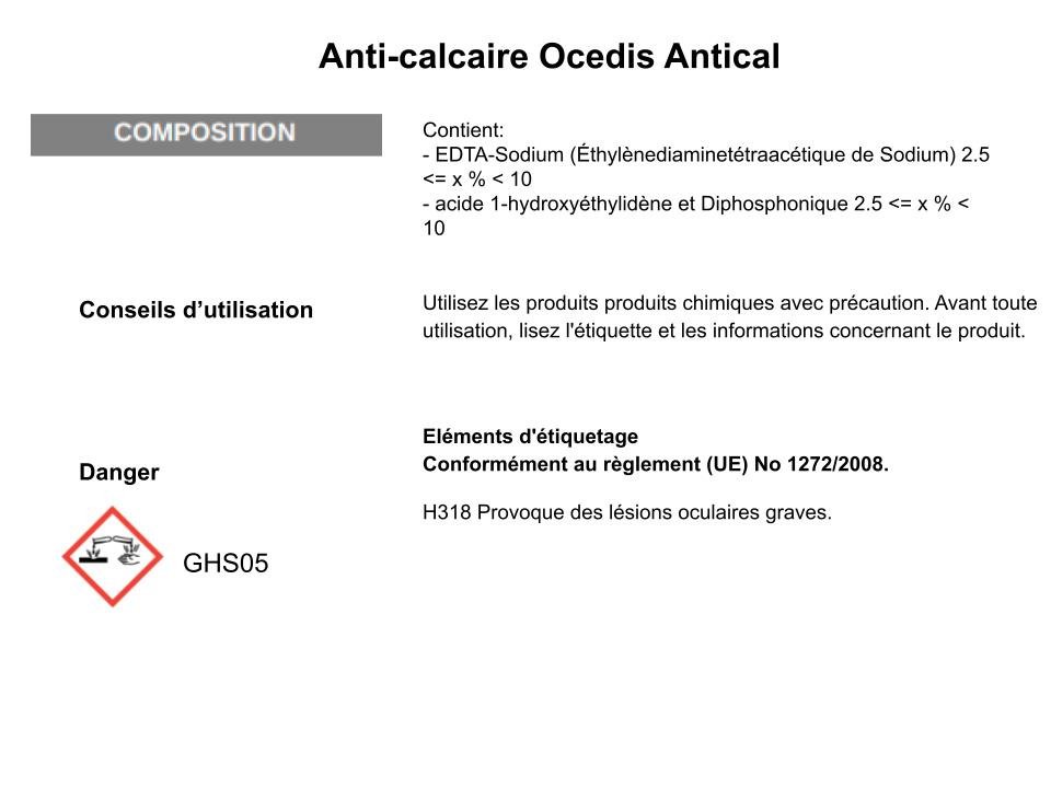 Préservez la longévité et les performances de votre spa avec Ocedis Antical 1 L – la solution anti-calcaire incontournable pour tous types de spas. Conçu pour prévenir les dépôts calcaires, le tartre tenace et les précipitations de métaux (comme le fer), ce traitement liquide sans mousse vous garantit une eau cristalline et un équipement protégé, même dans les régions à eau dure.